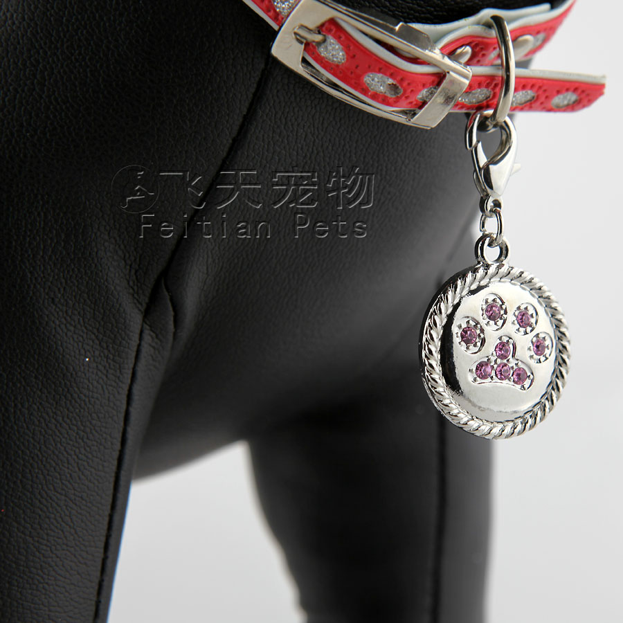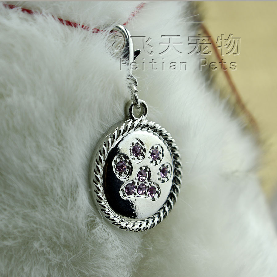 【產品說明】出口在原單寵物飾品,一共鑲嵌了8顆精致彩鉆,非常閃亮,外加合金彈簧掛鉤,可以直接掛在寵物項圈上或者項鏈上,做為寵物的標識牌、裝飾牌。