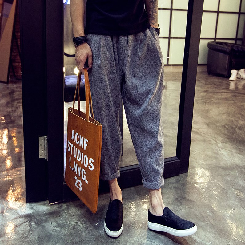 / 原創秋季亞麻小腳男士哈倫褲低襠垮褲棉麻9分褲