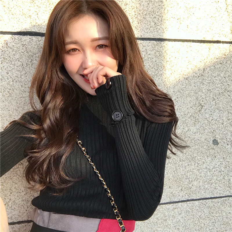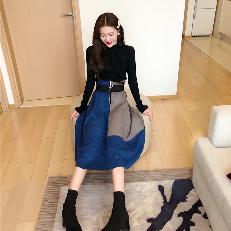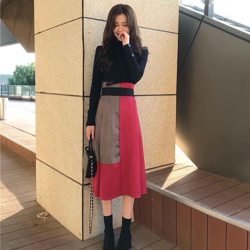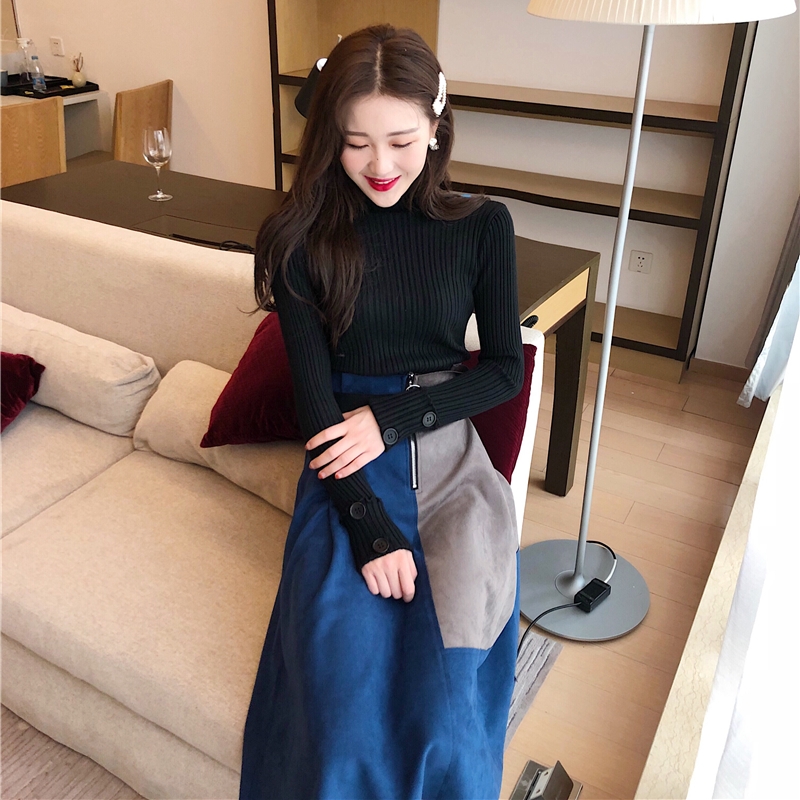 / 簡約韓版時尚新款純色百搭打底衫撞色時髦中長款打底裙氣質套裝女