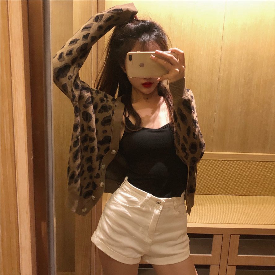 2018秋裝新款韓版時尚外套女百搭chic復古撞色豹紋v領針織開衫潮
