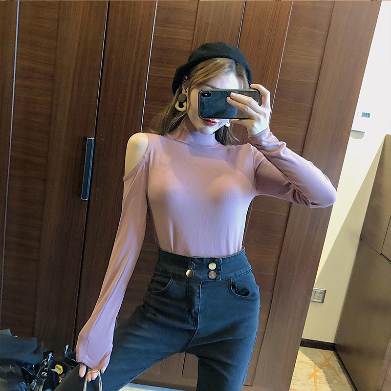 / 2018秋冬新款韓版chic時尚百搭修身露肩顯瘦上衣女裝打底衫T恤潮
