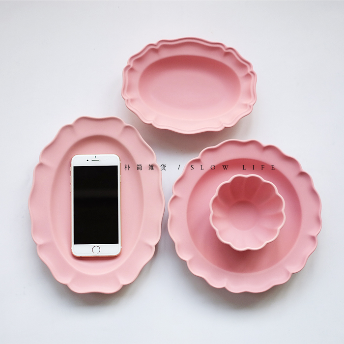 樸簡 日本作家風啞光磨砂陶瓷花形純色餐盤 橢圓盤深盤 小碗