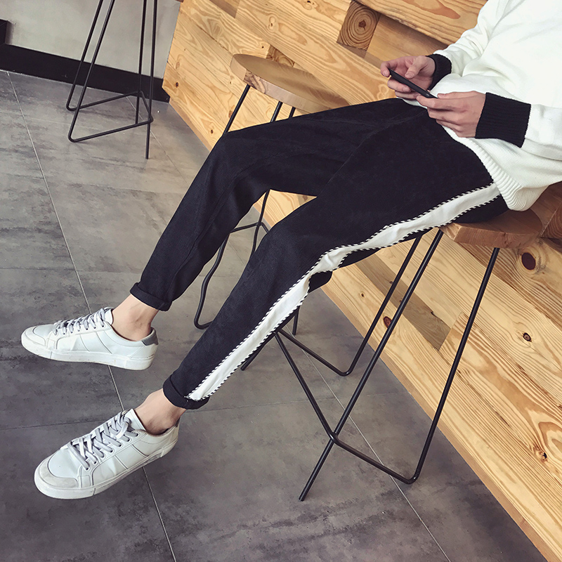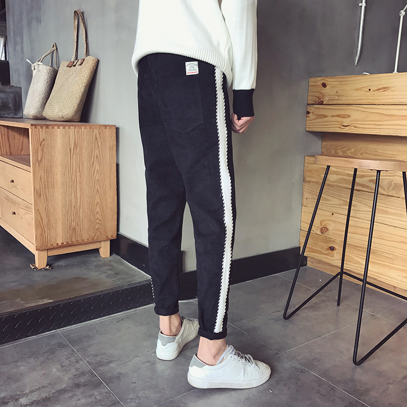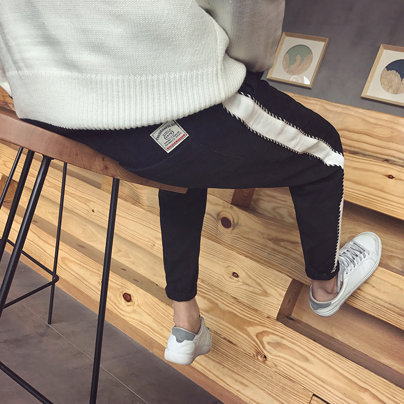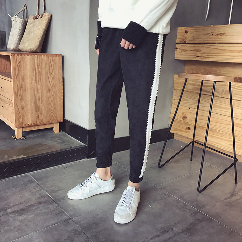 男裝韓版修身小腳潮男燈芯絨加絨休閑男錐形哈倫褲