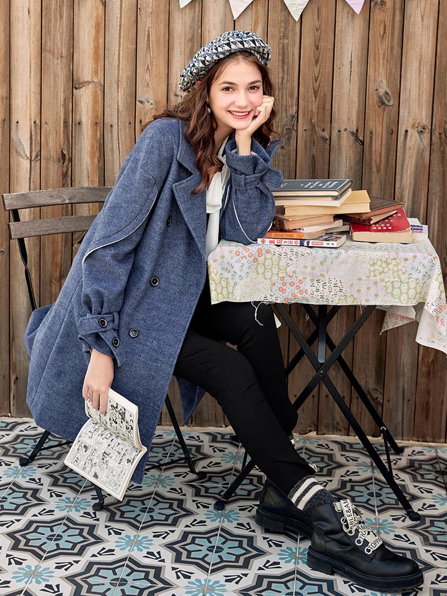 / MG小象復古毛呢外套女冬季新款中長款寬松學院風氣質過膝呢子大衣
