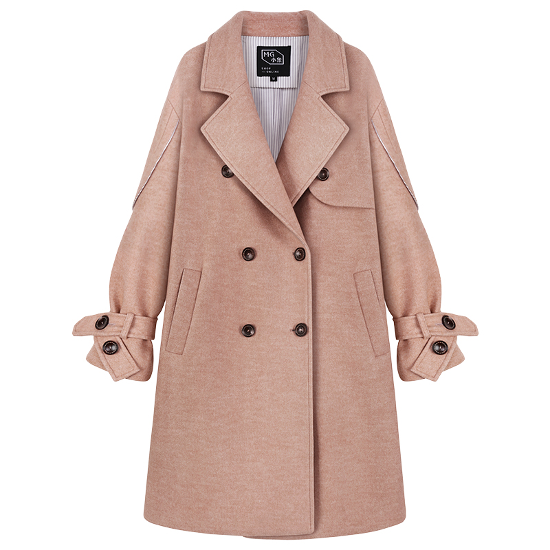MG小象復古毛呢外套女冬季新款中長款寬松學院風氣質過膝呢子大衣