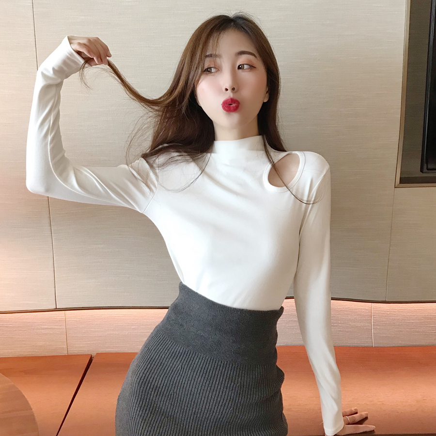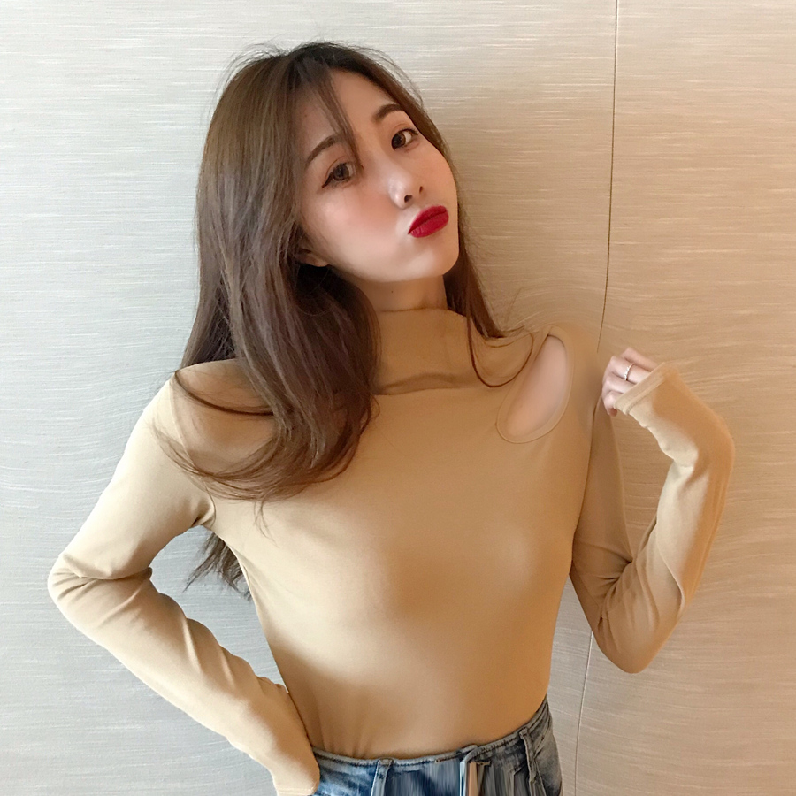 2018新款復古氣質時尚上衣女百搭修身長袖chic小高領打底衫T恤潮