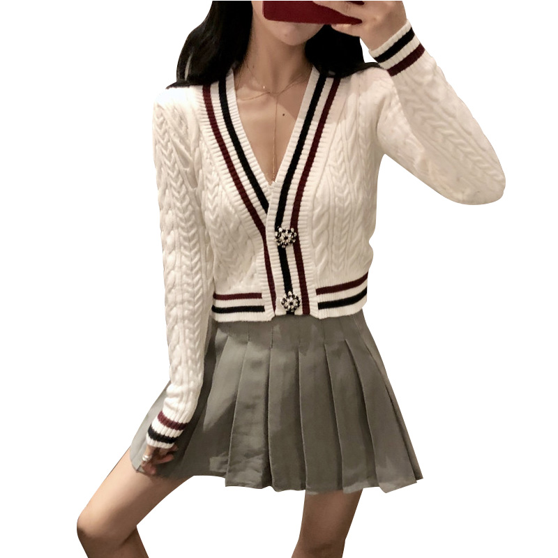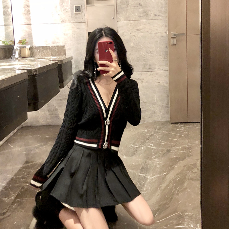 新款chic時尚套裝秋冬學院風減齡少女修身針織開衫短裙百搭兩件套
