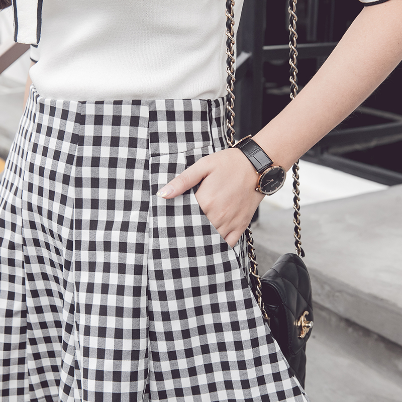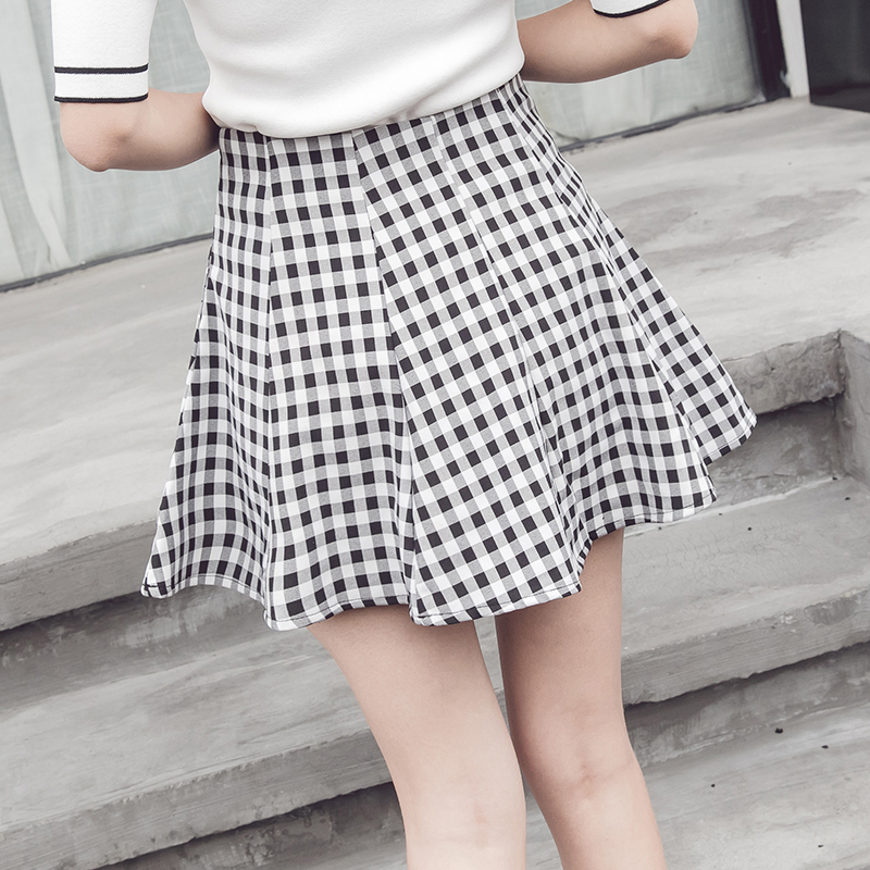 / 夏季韓版高腰格子半身裙女A字百褶蓬蓬裙防走光褲裙包臀傘裙半裙