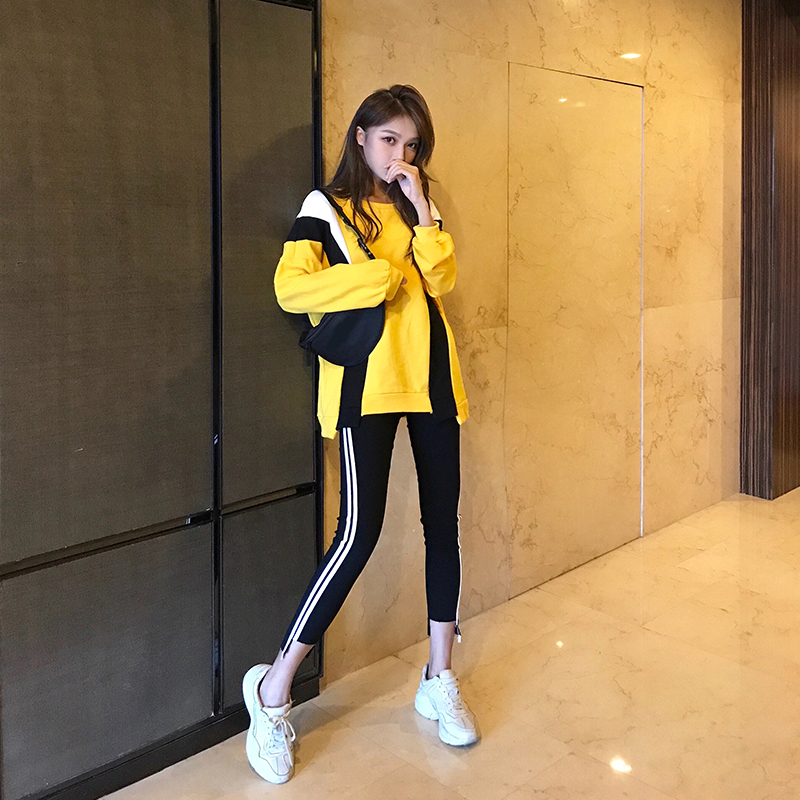 / 小清新時尚學生氣質套裝秋裝新款韓版中長款上衣高腰緊身九分褲