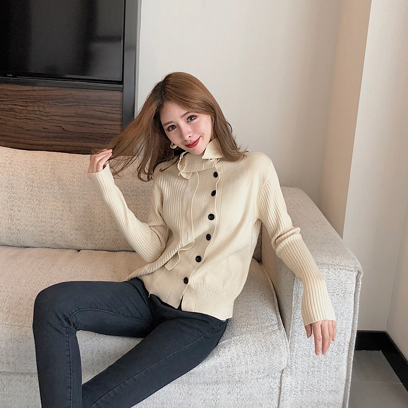 2018秋冬新款韓版長袖開衫純色單排扣寬松顯瘦針織百搭chic外套女