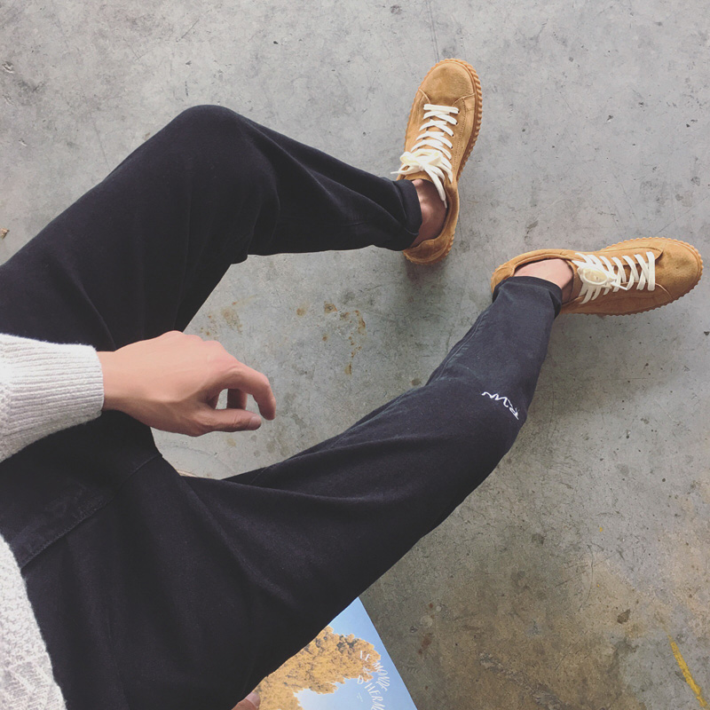 / 秋冬新品韓版字母刺繡休男士修身水洗小腳牛仔褲