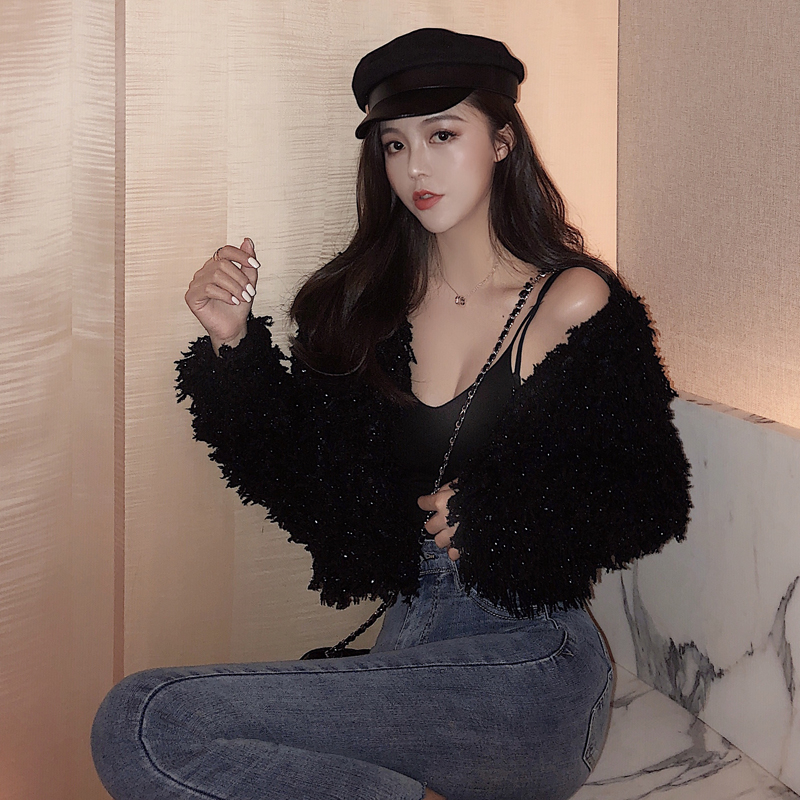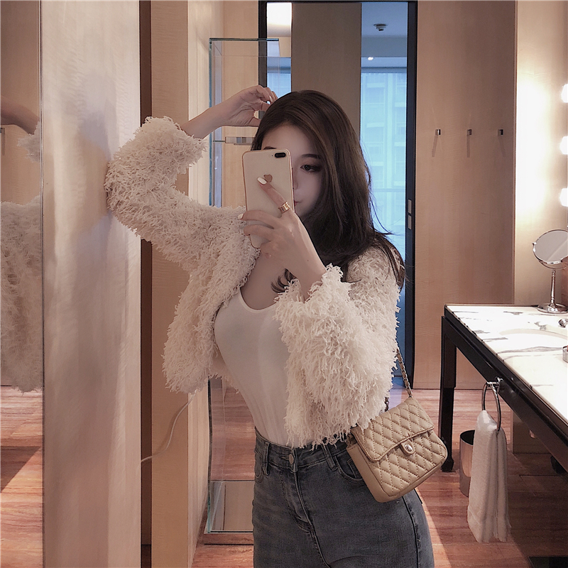2018新款韓版秋冬時尚復古百搭小香風毛毛開衫時尚顯瘦短款外套女