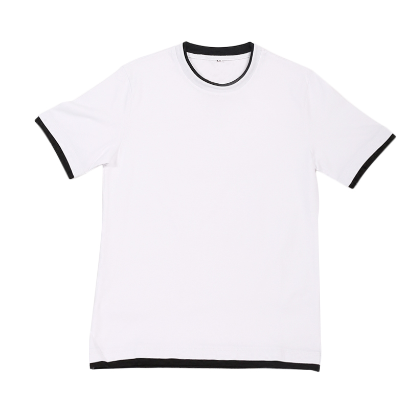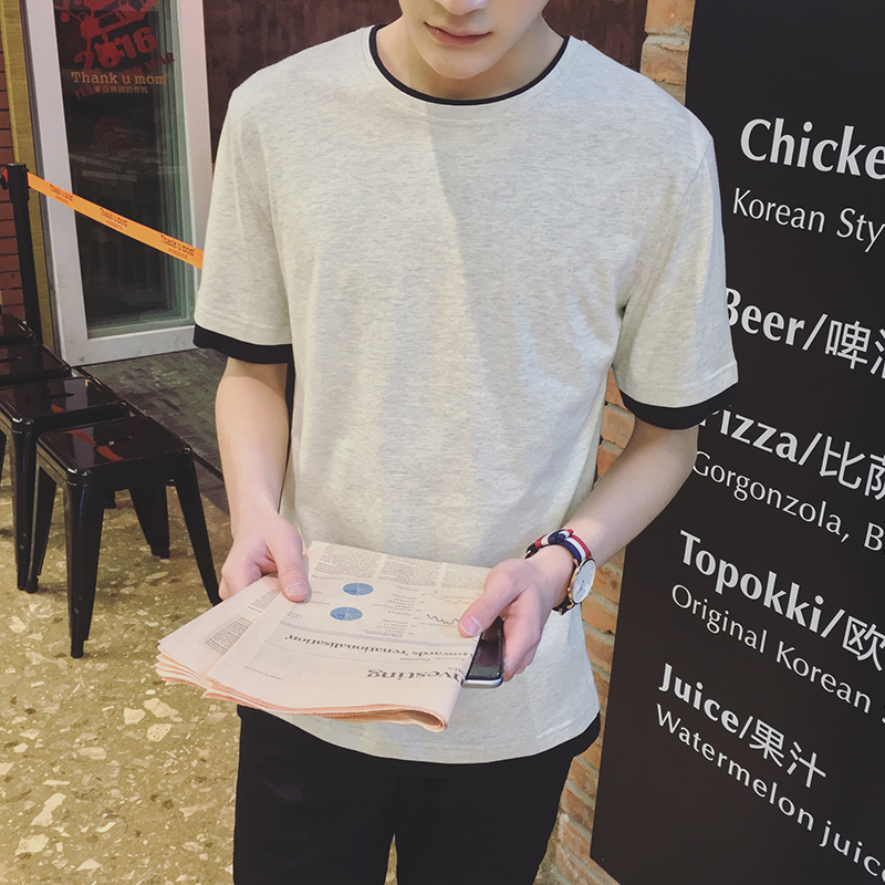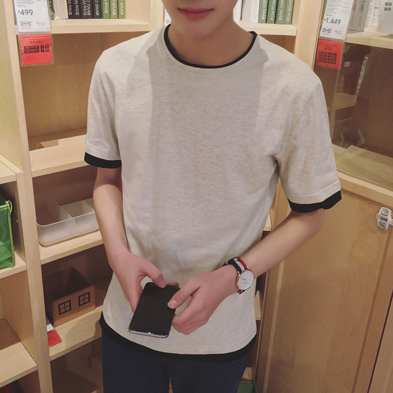 新款日系假兩件純色汗衫韓版男士打底衫短袖T