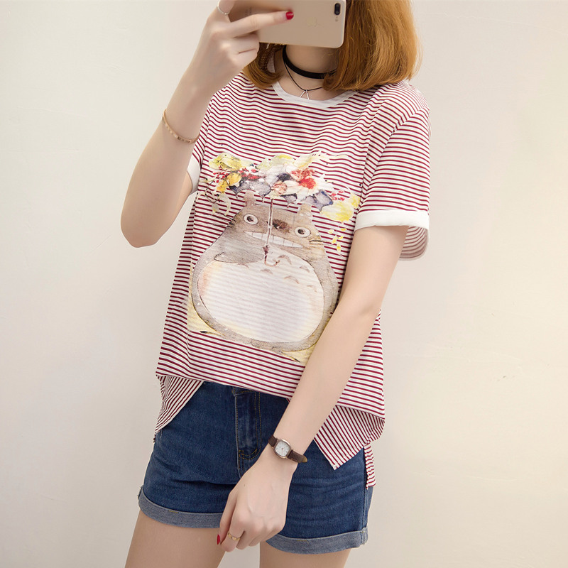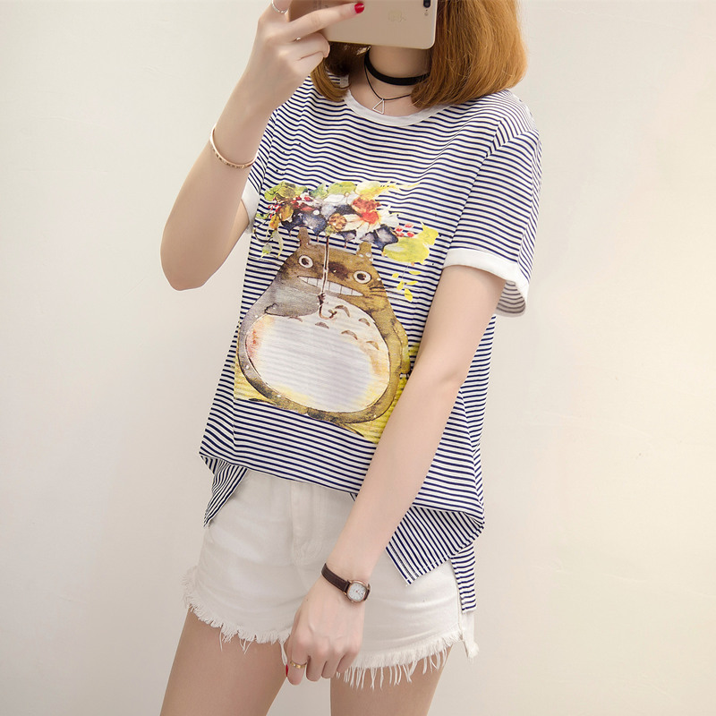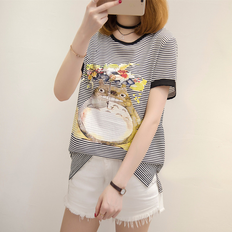 夏裝新款女寬松條紋t恤女韓版體恤衫短袖小清新上衣女夏衣服