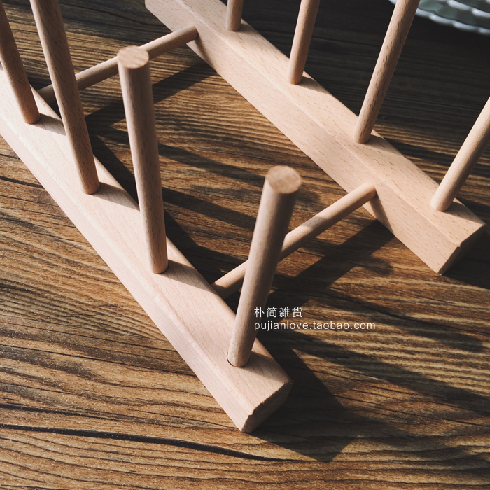 日式廚房置物架 zakka進口櫸木餐具盤子收納架 展示架書架CD架