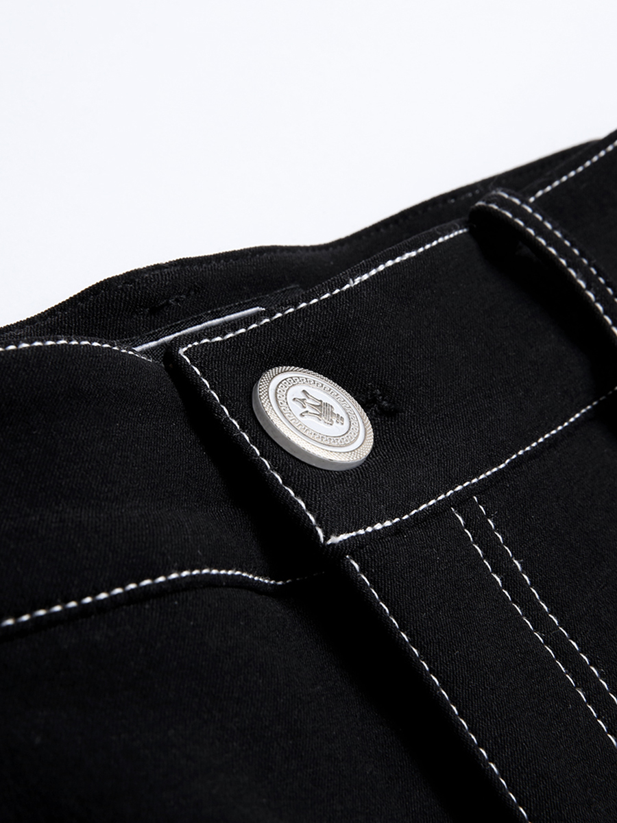 / MG小象黑色緊身小腳褲女秋冬時尚高腰休閑鉛筆褲外穿打底九分褲子