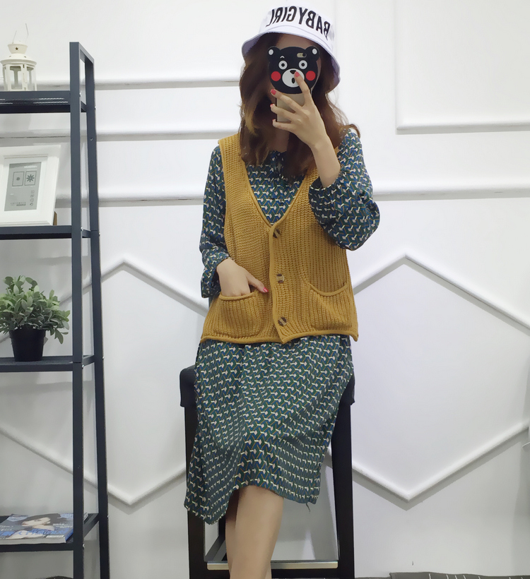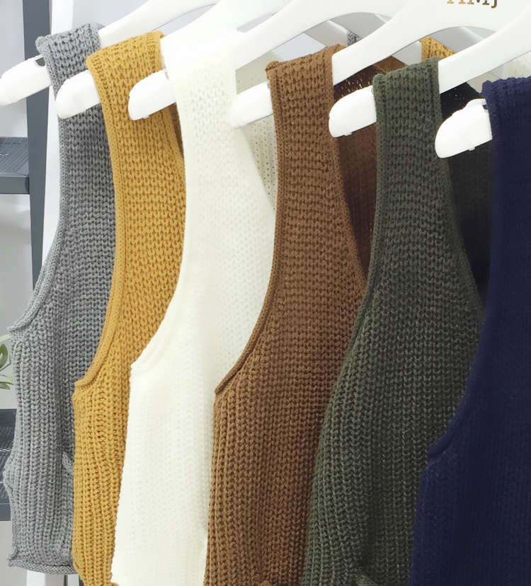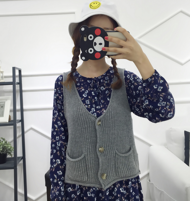 / 韓版寬松v領外搭背心女裝馬甲上衣秋裝學生無袖短款針織開衫外套