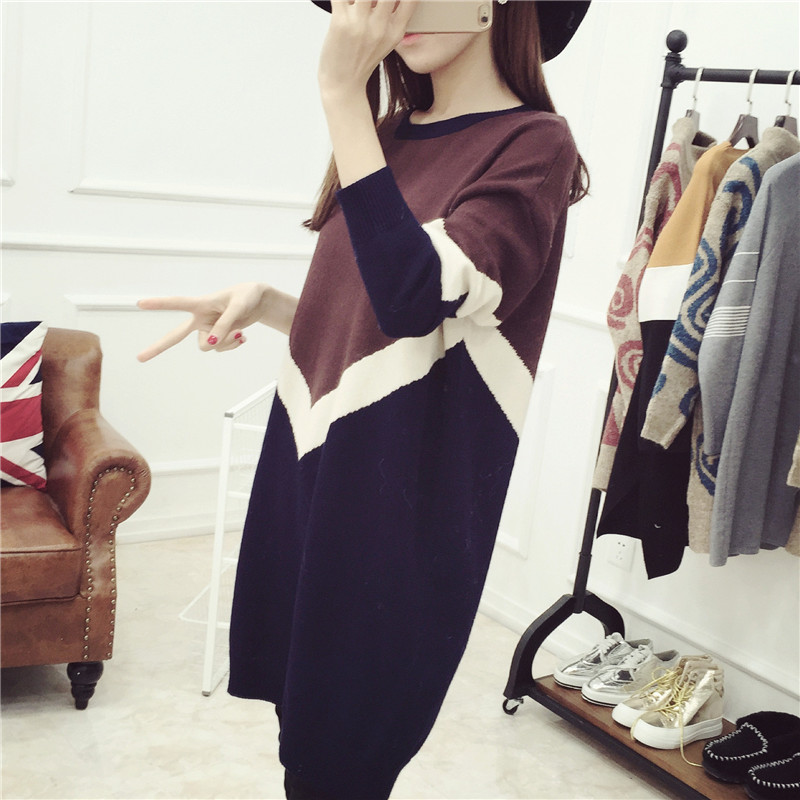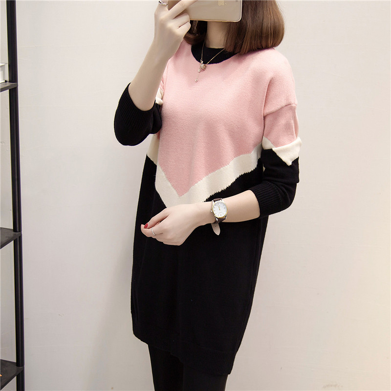 / 套頭毛衣女秋冬中長款寬松針織衫打底衫連衣裙冬裝女裝新款潮