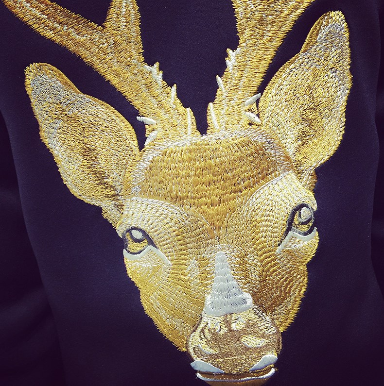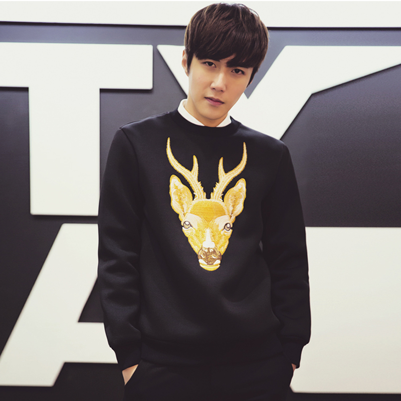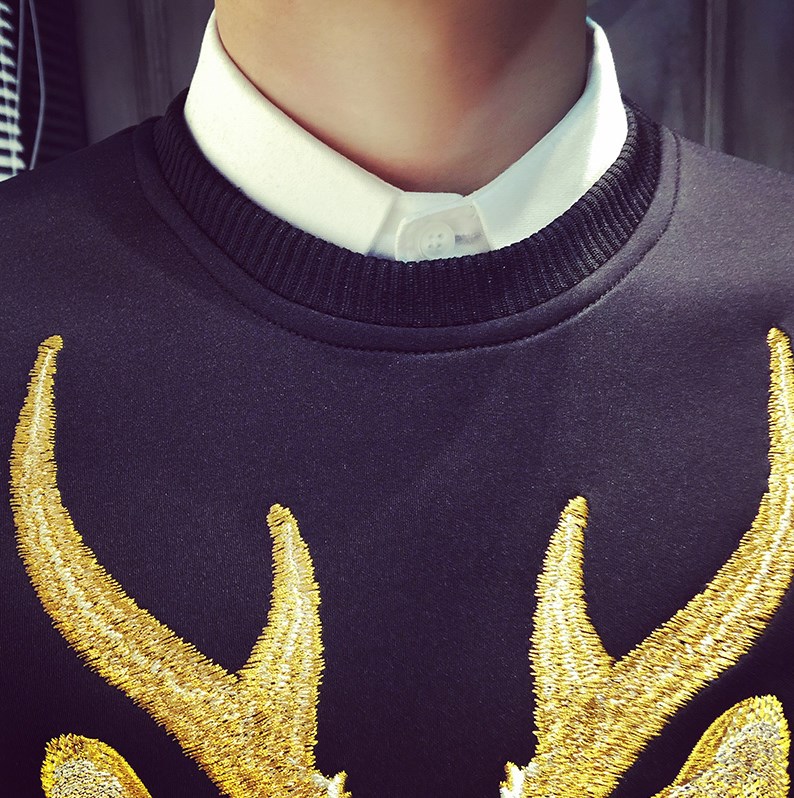 鹿頭刺繡潮男港風套頭太空棉衛衣韓版春冬大碼修身外套新