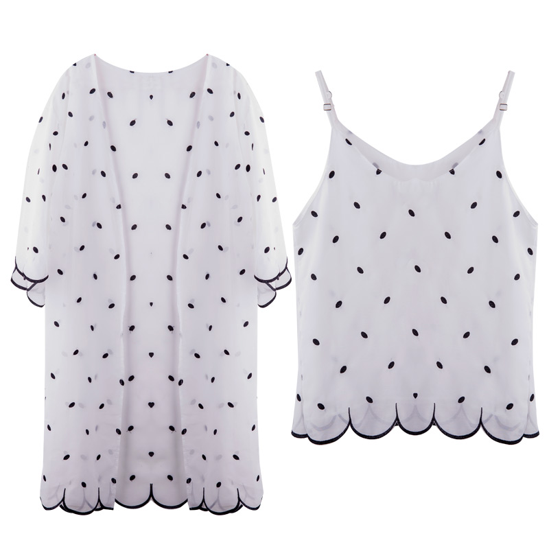 / 寬松波浪邊雪紡衫夏裝新款女裝韓版中長款波吊帶開衫兩件套潮