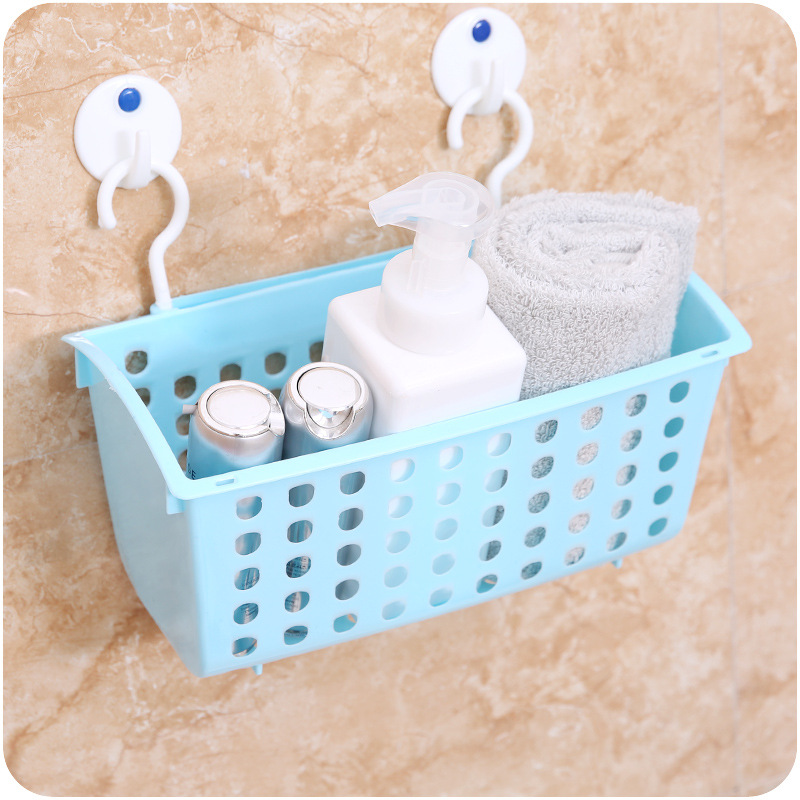 / 廚房衛生間浴室懸掛鏤空瀝水置物籃化妝用品收納籃塑料收納框純色