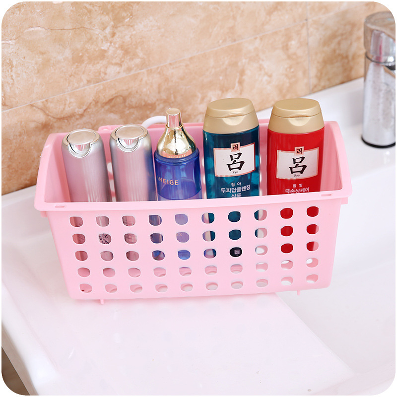 廚房衛生間浴室懸掛鏤空瀝水置物籃化妝用品收納籃塑料收納框純色