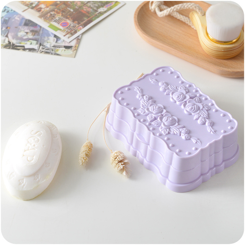 / 立體花朵香皂盒 創意 浴室瀝水塑料帶蓋肥皂盒 家庭用薔薇花旅行