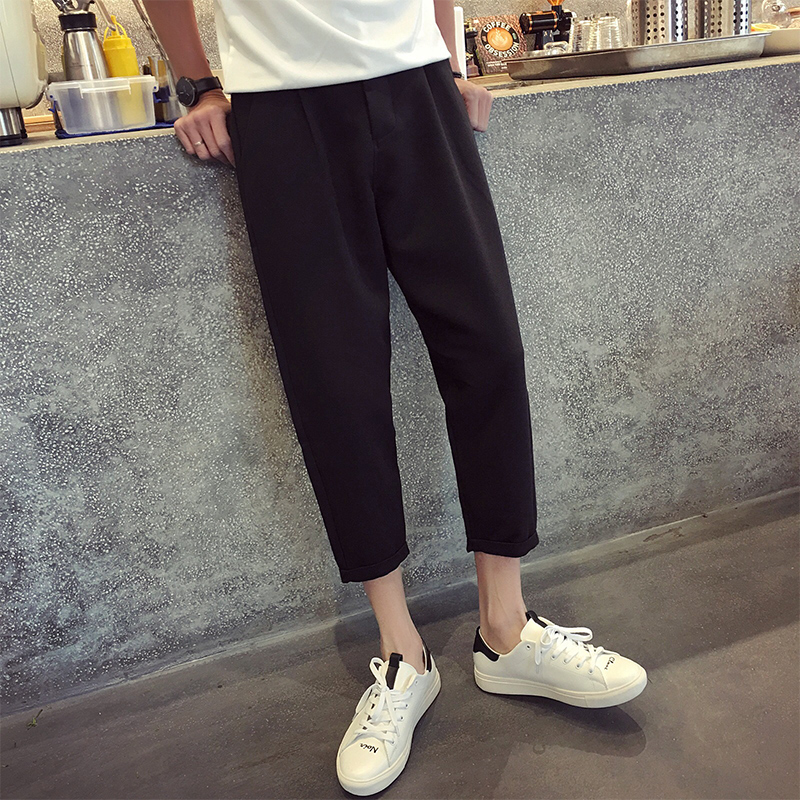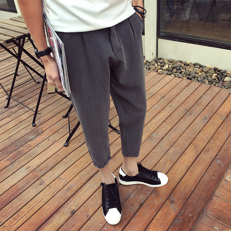 / 原創韓版夏季小腳寬松男士7分錐形褲哈倫褲
