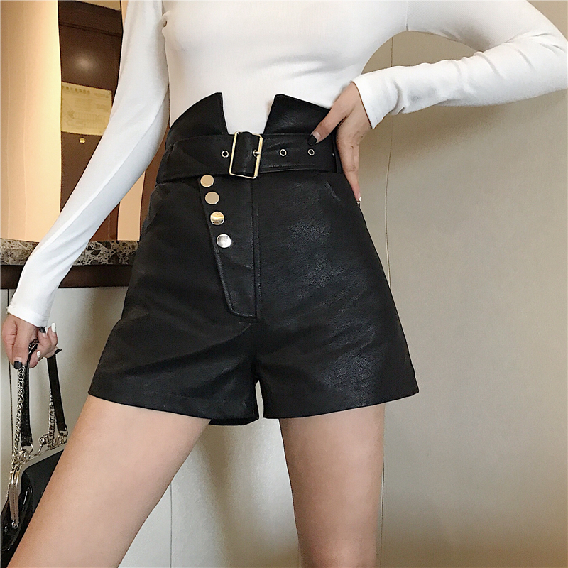 / 褲子2018新款秋冬百搭chic氣質時尚顯瘦設計感高腰皮短褲女配腰帶