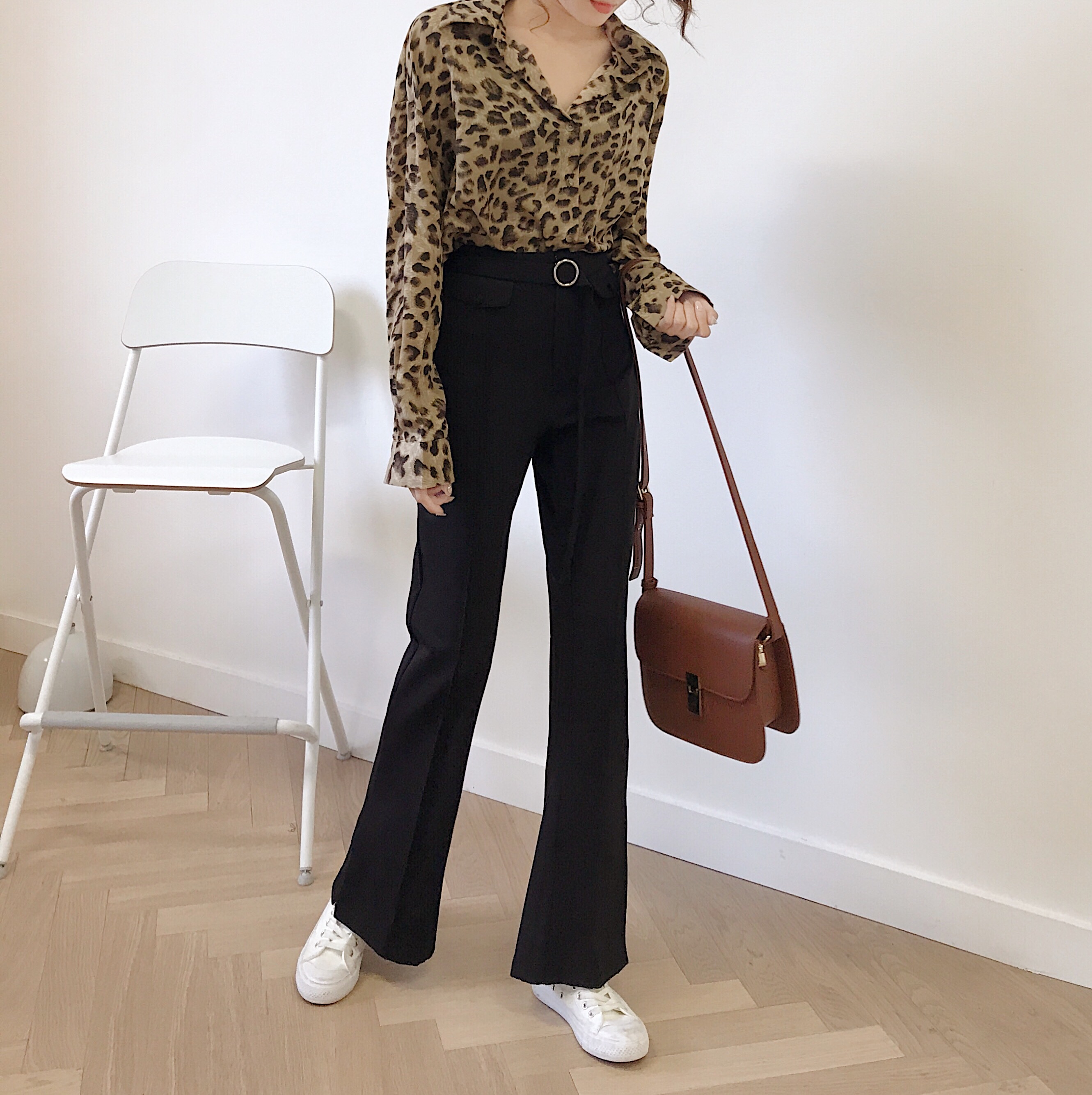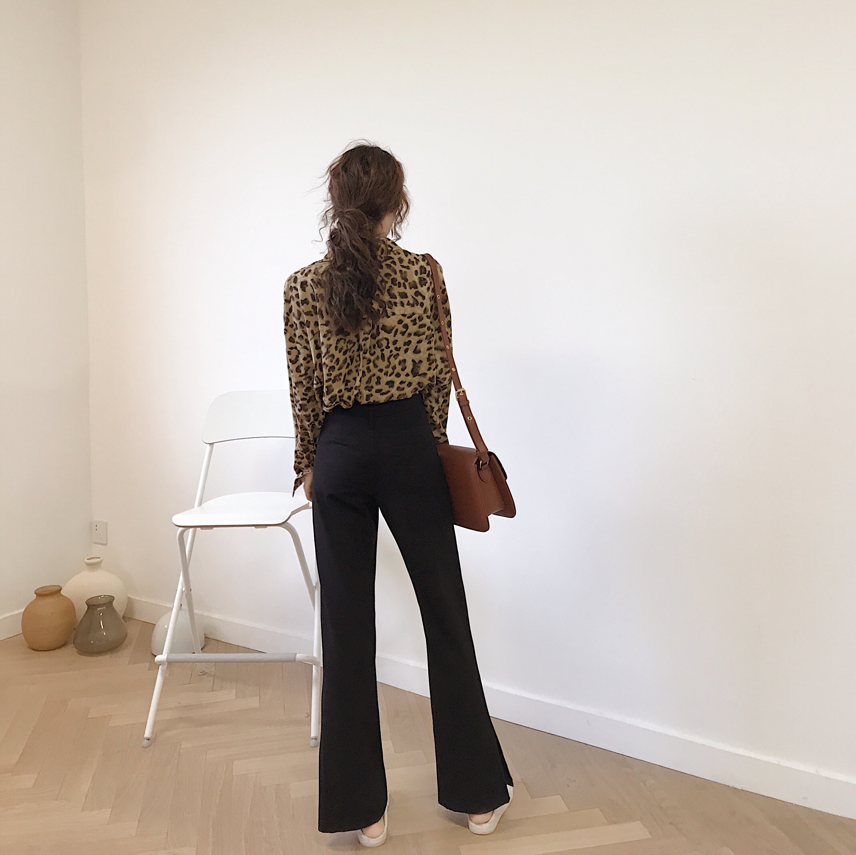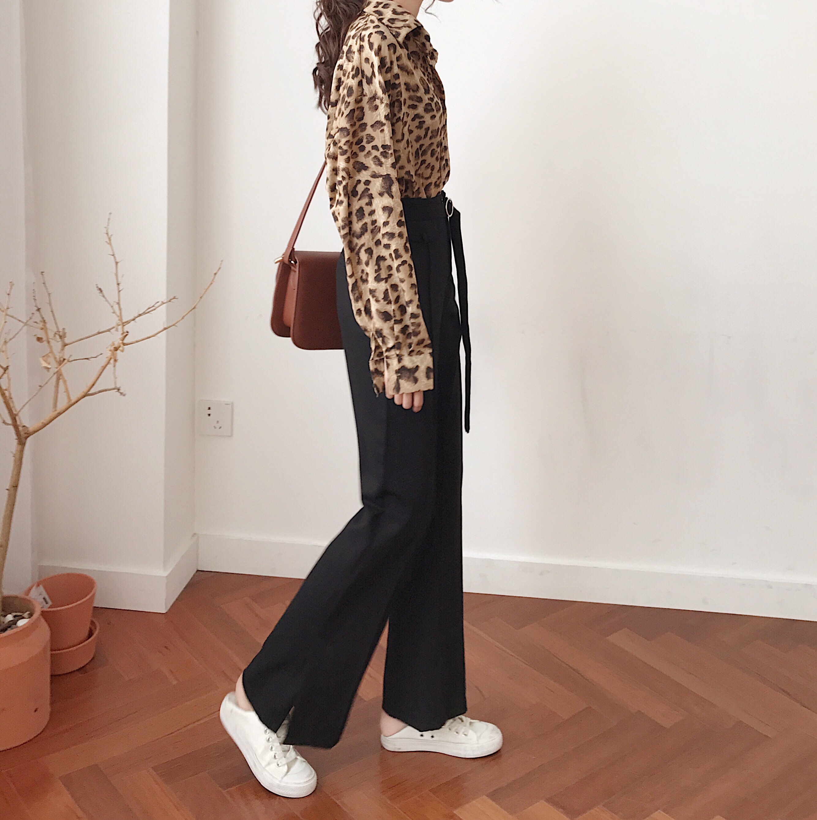 韓國黑色高腰顯瘦直筒長褲女氣質百搭開叉休閑西裝褲