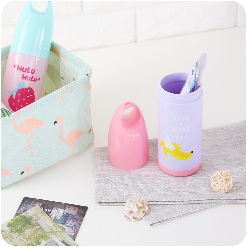 / 牙刷收納盒可愛水果圖案便攜式牙刷盒帶蓋旅行刷牙洗漱牙具手提盒