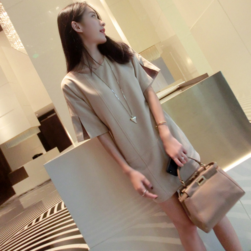 / 春夏新款女裝潮韓版顯瘦中裙子夏季短袖直筒連衣裙修身A字裙