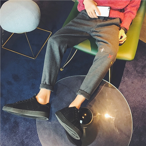 / 新款冬款港系文藝字母雙面呢加厚修身小腳休閑褲男