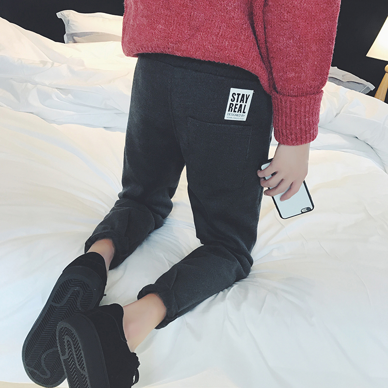 新款冬款港系文藝字母雙面呢加厚修身小腳休閑褲男