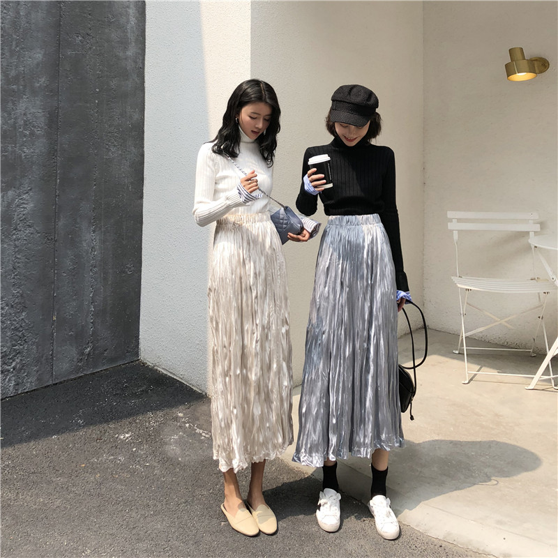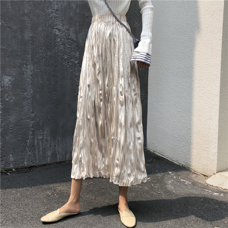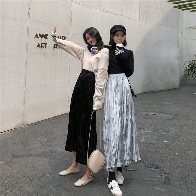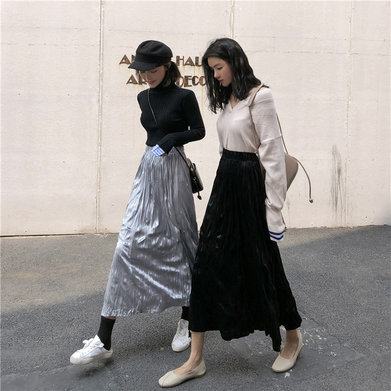 裙子秋冬復古chic新款百搭氣質高腰顯瘦半身裙寬松A字中長款裙女