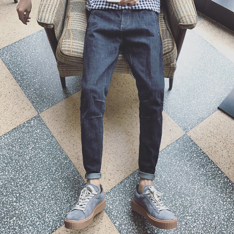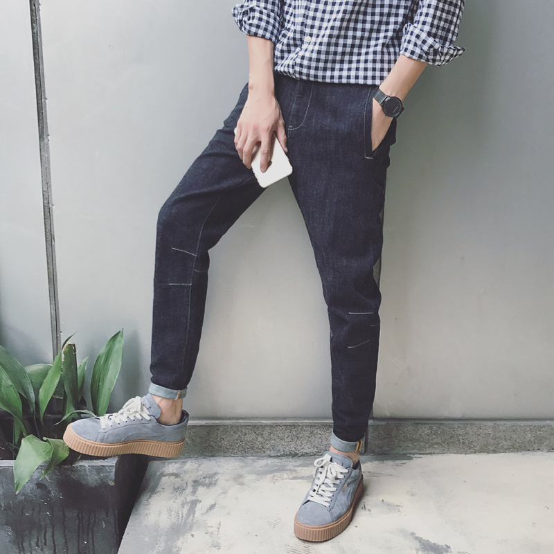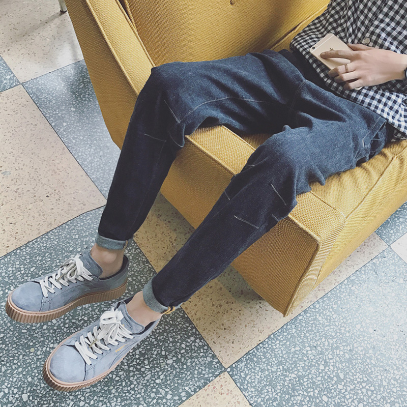 / 新款男裝韓版修身純色牛仔褲男士直筒小腳褲哈倫褲