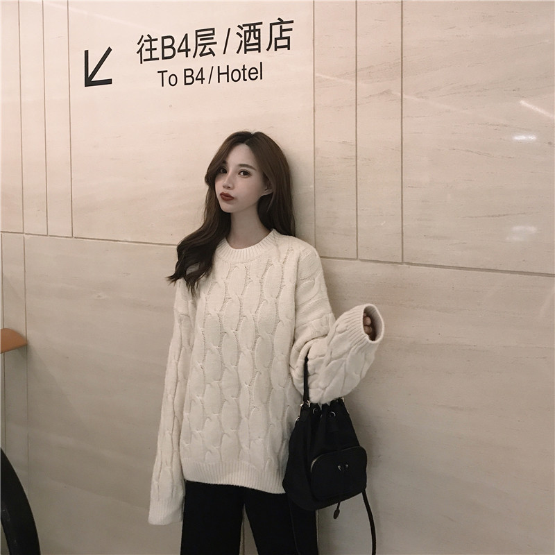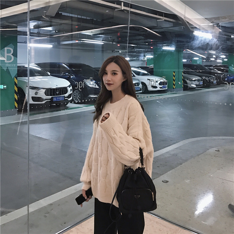 / 復古麻花懶惰風寬松毛衣休閑高腰毛呢束腳哈倫蘿卜褲新款時尚套裝