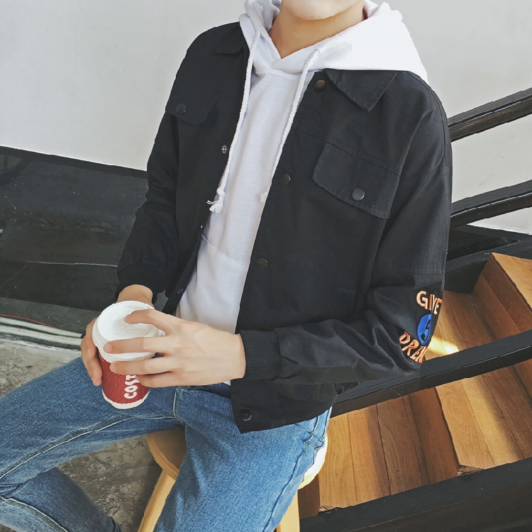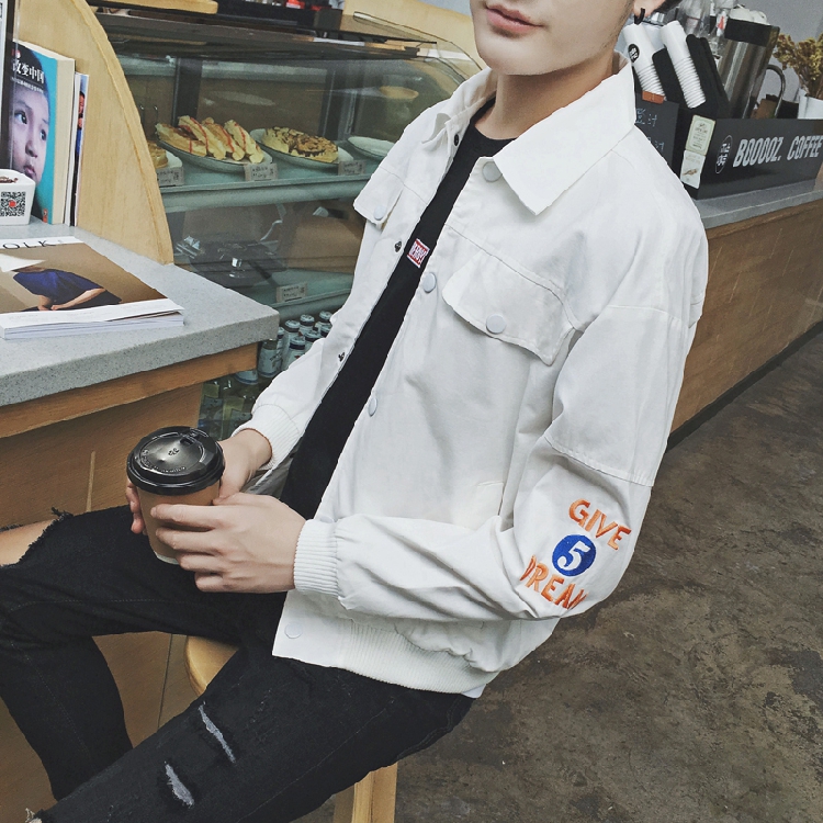 原創翻領韓版個性休閑印花男士夾克修身版外套