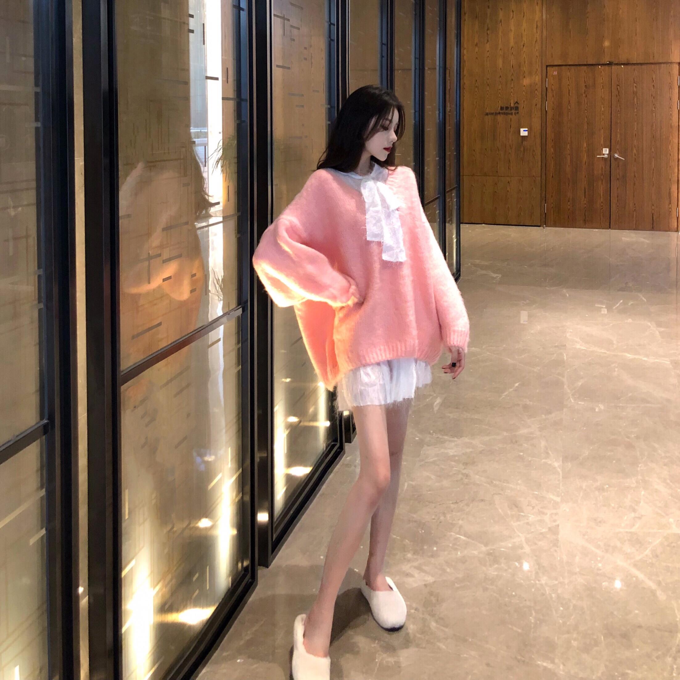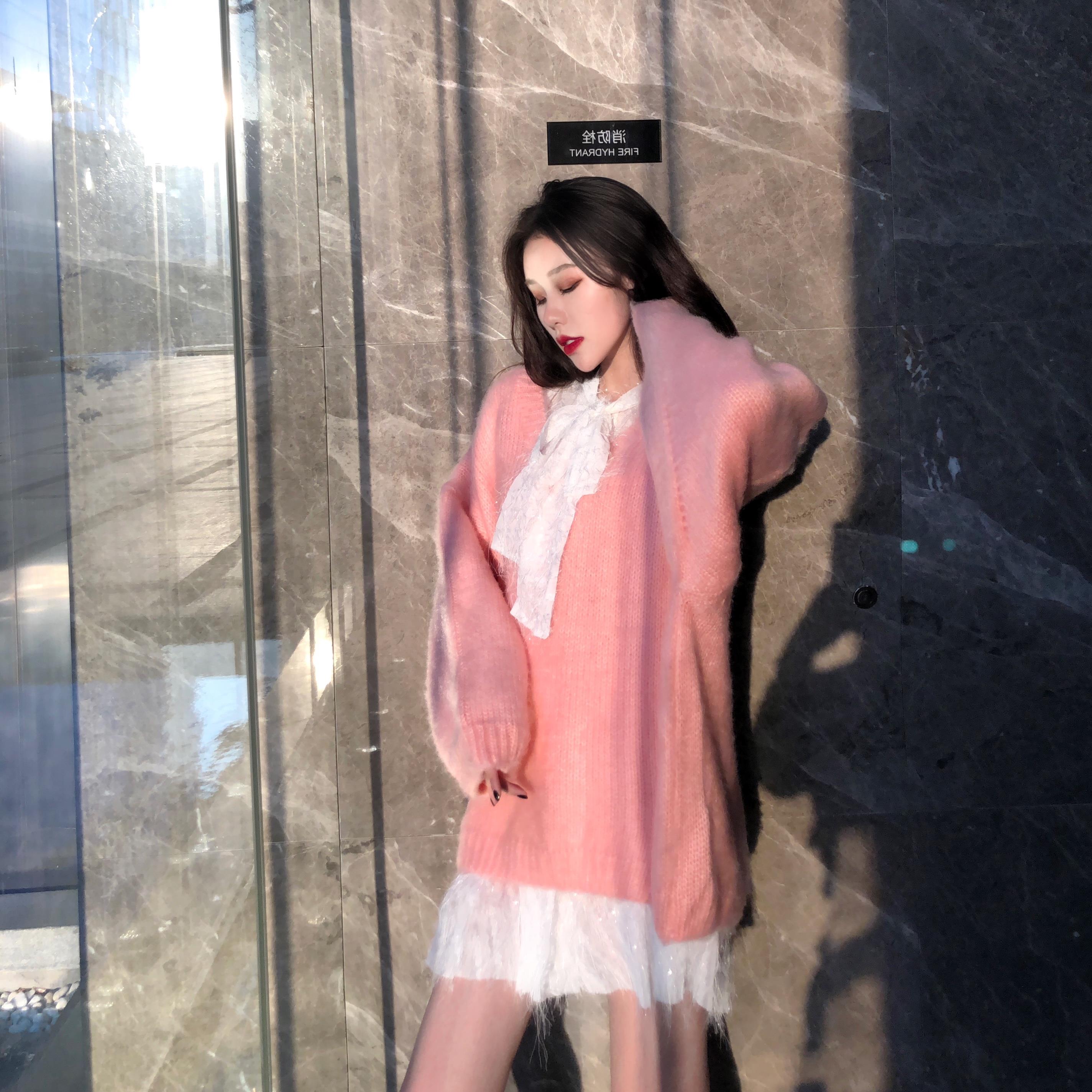 粉色毛衣|桔色毛衣|白色連衣裙|黑色連衣裙