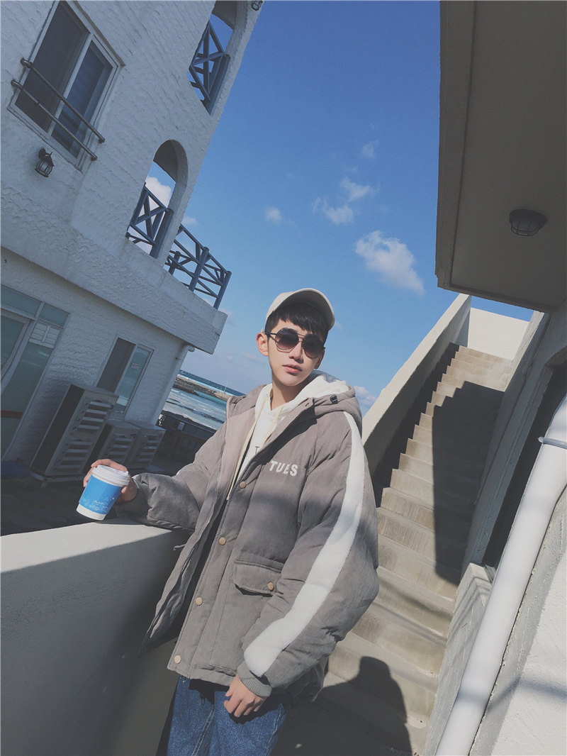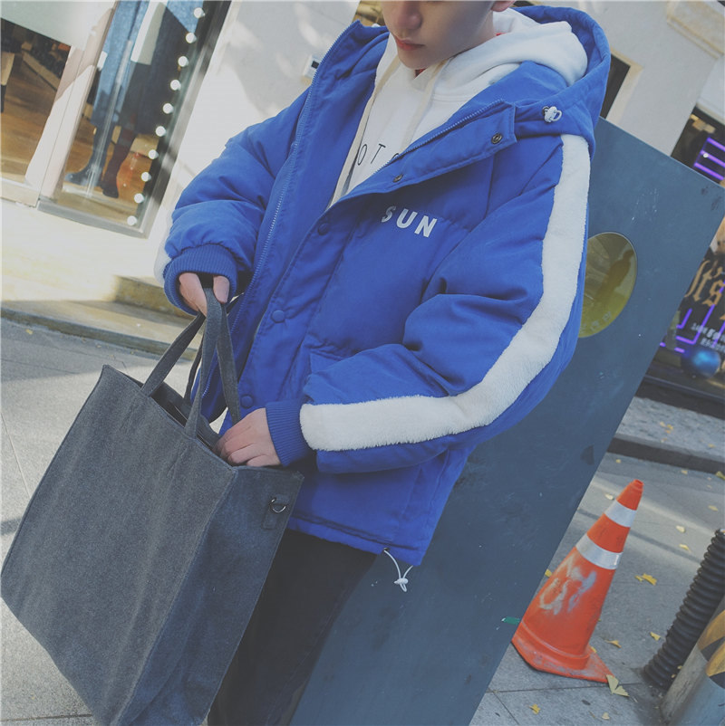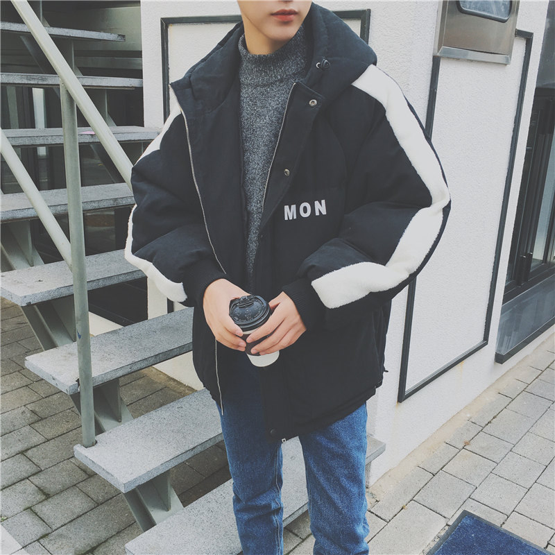 / 男裝撞色字母加厚面包服港風男士寬松連帽短款棉衣