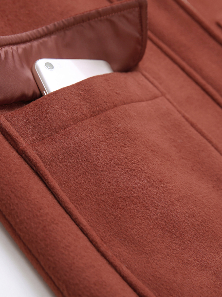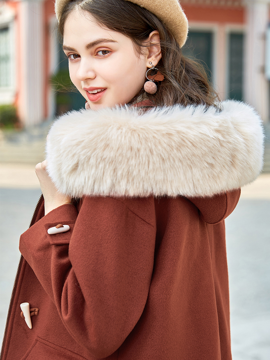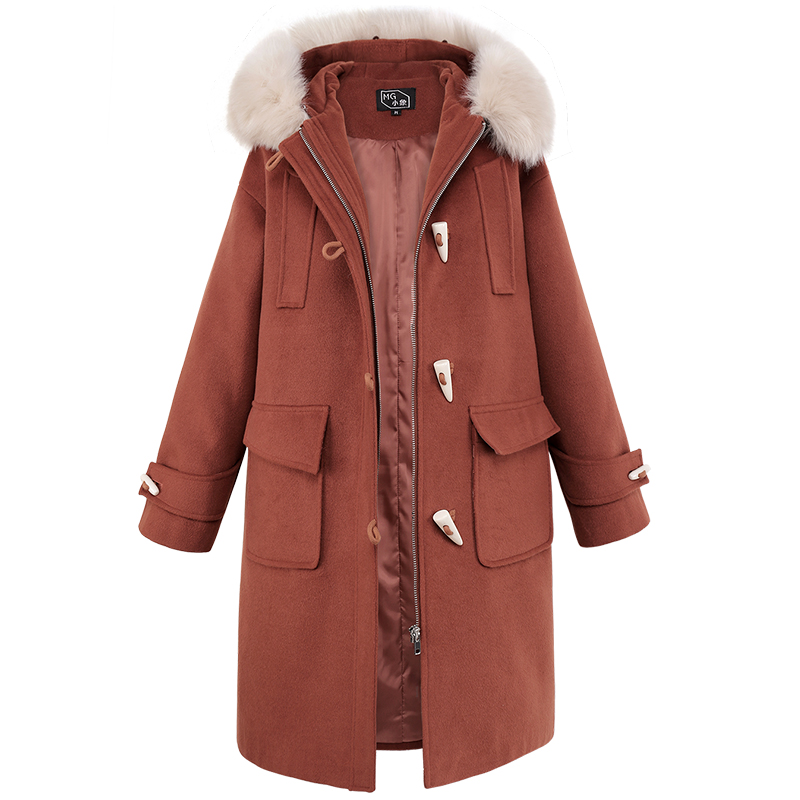 MG小象連帽牛角扣呢子大衣女中長款韓版冬季新款寬松復古毛呢外套