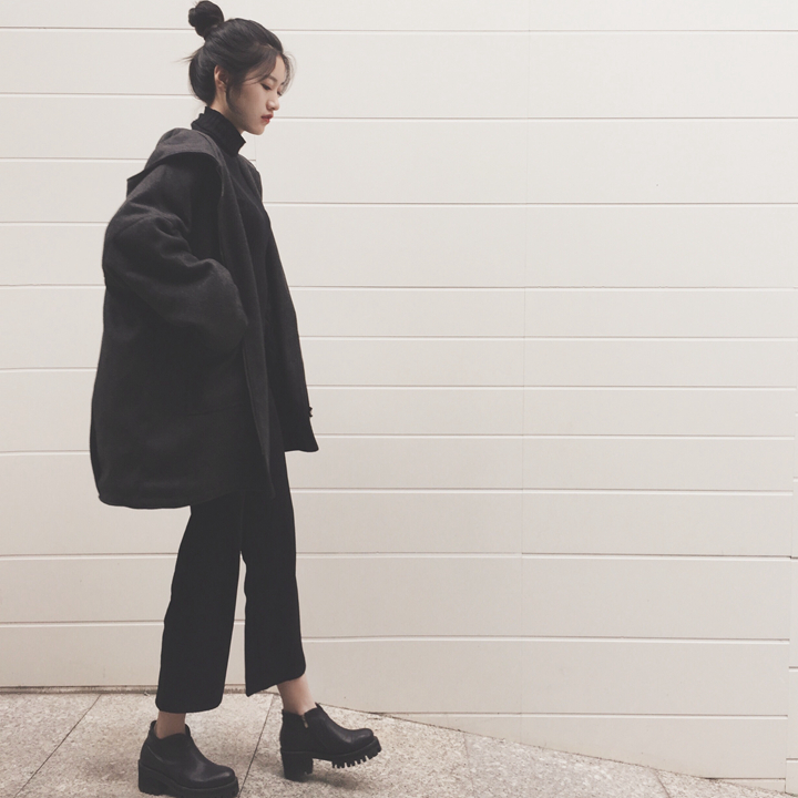 / 冬裝新款保暖時尚chic中長款百搭氣質寬松連帽加厚呢子外套大衣女
