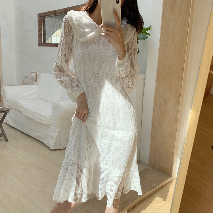 大翻領的連衣裙還可以搭配任何圓領毛衣