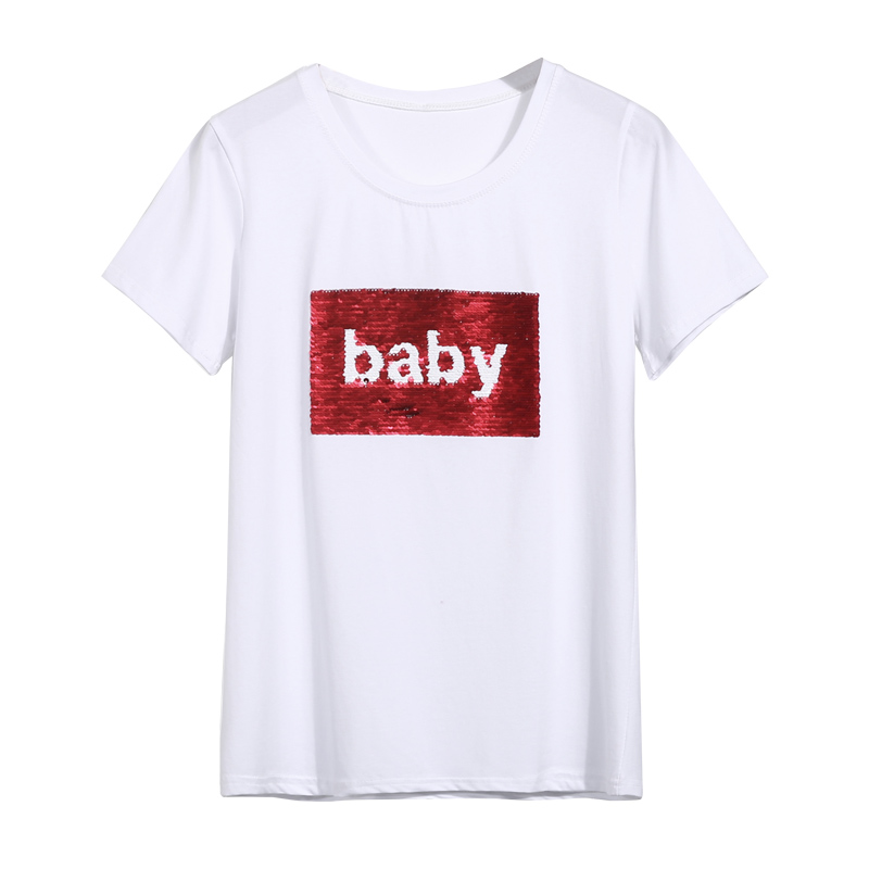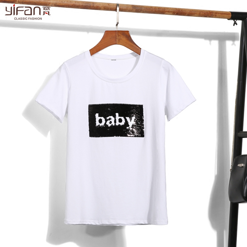 / 韓版新款夏裝白色短袖t恤女寬松學生體恤亮片上衣百搭打底衫