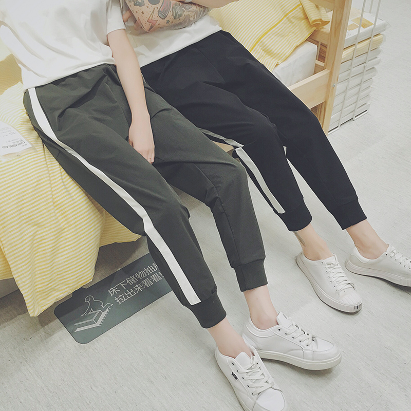 / 春季新款撞色印花韓版情侶小腳休閑褲男女九分褲