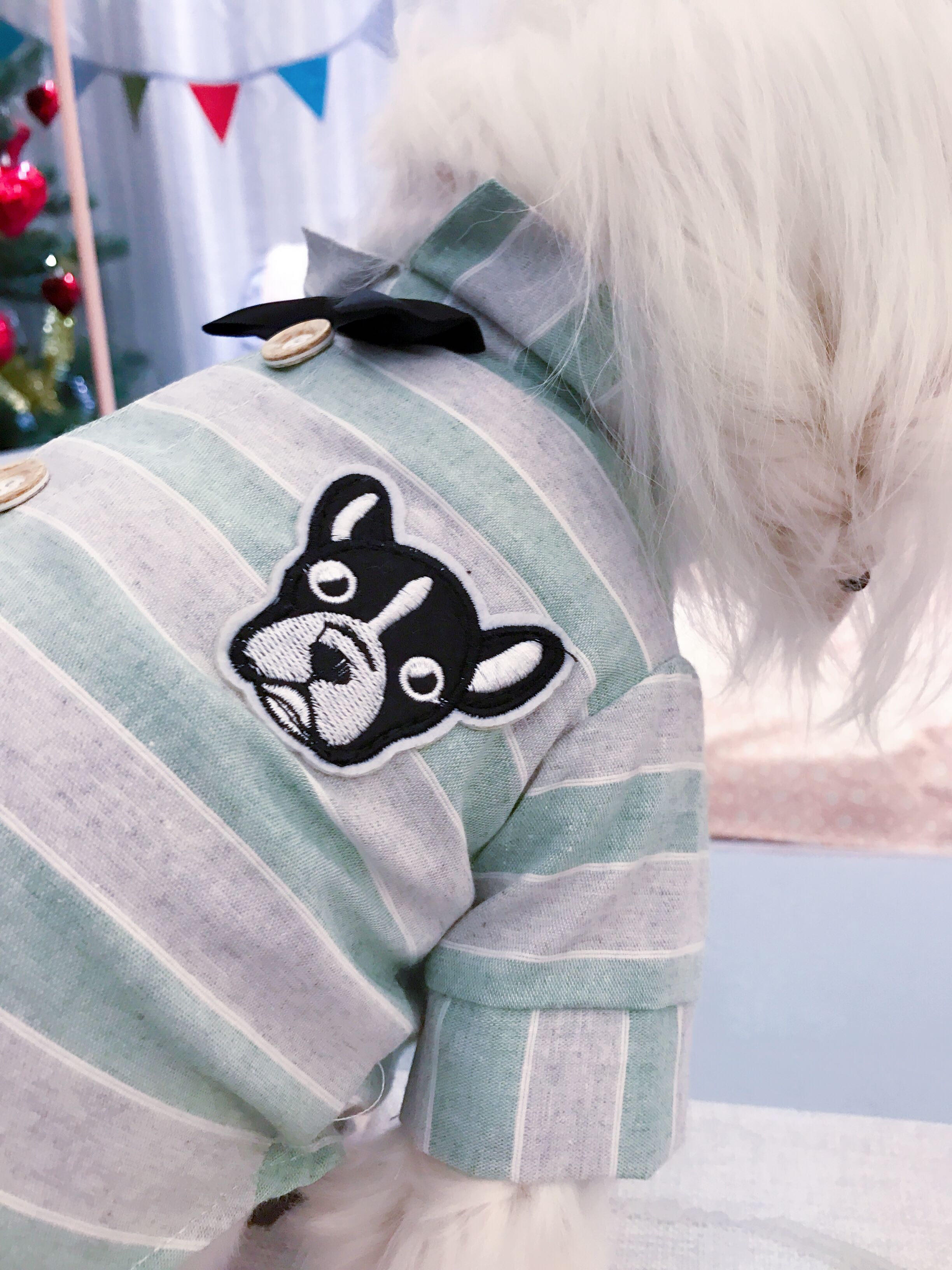 斗牛頭頭哈哈哈哈!!萌的不要不要~~~~~哈哈哈這個設計可愛的不要不要好嗎~~!你會喜歡噠~~~萌萌噠~~帥帥噠~~~可愛到爆哦!!版型非常好!!~上身很好看呢~下面是丸子家小模特馬爾濟斯小團團~恩恩真的很好看很顯身材哈哈哈~~