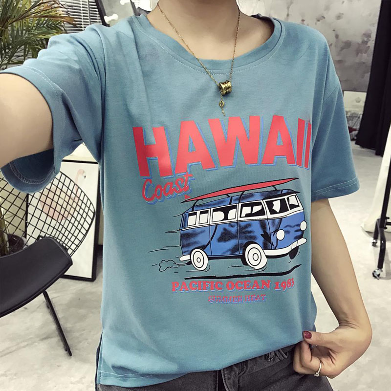 學院風春夏款卡通印花短袖T恤女寬松夏季顯瘦上衣潮百搭大碼體恤