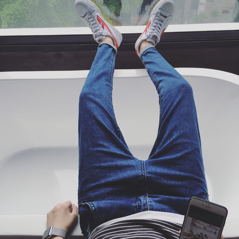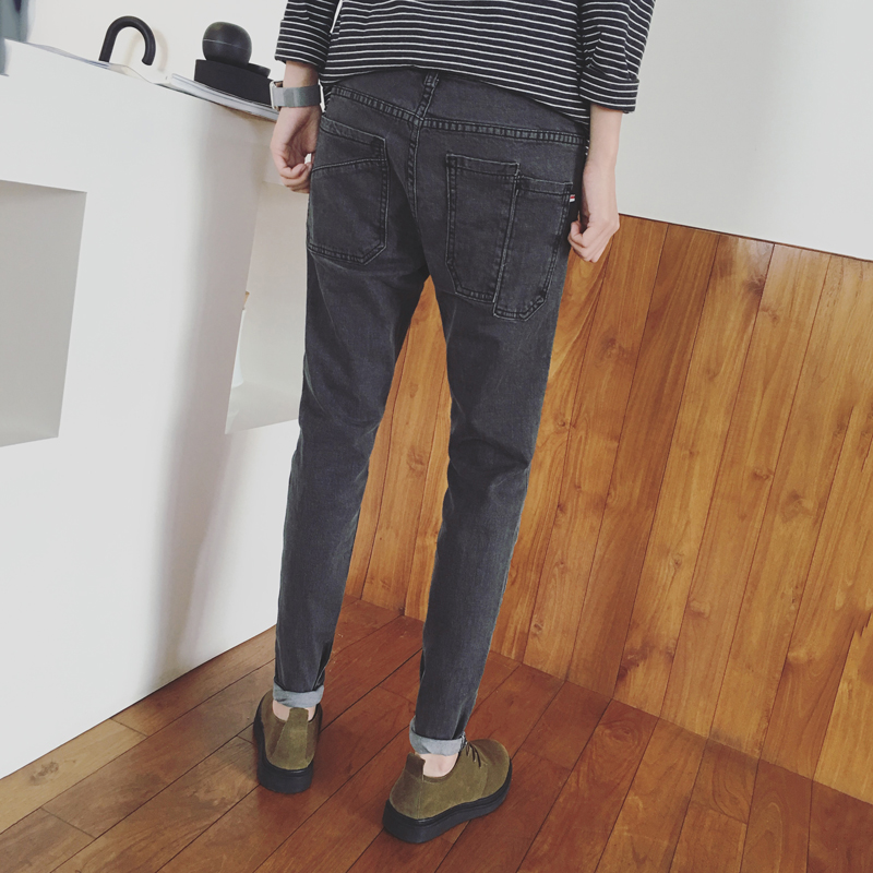 / 新款男裝口袋刺繡潮流韓版修身男士牛仔褲小腳褲