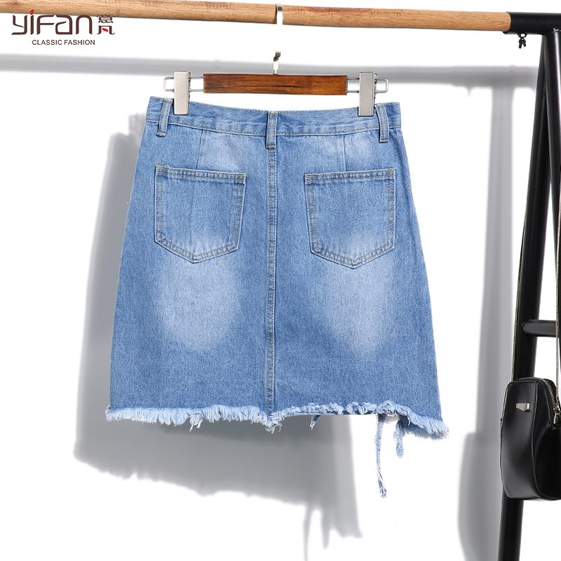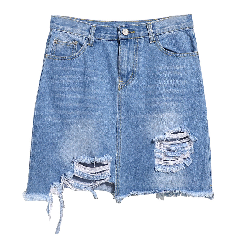 / 春夏裝新款不規則包臀牛仔裙女破洞A字半身裙子學生百搭短裙