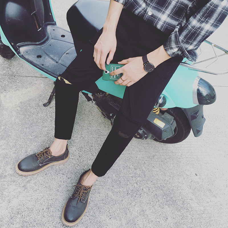 / 新款冬裝破洞迷彩補丁錐形小腳韓版休閑褲男士長褲